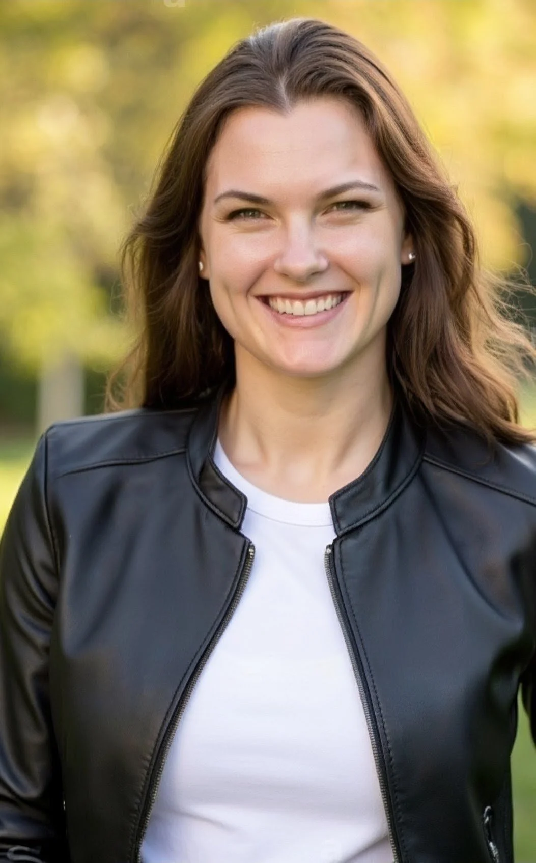 A woman in a pink blouse and a man in a gray suit standing outdoors with trees in the background.